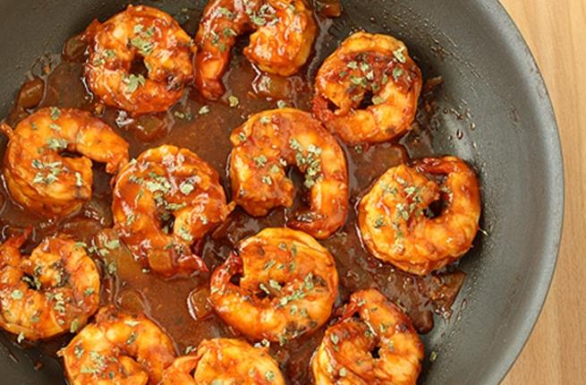 جمبري متبل بالبهارات الحارة. وصفة شهية لوجبة خفيفة.