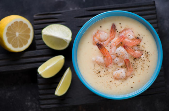 – على نار متوسطة، ضعي قشور الجمبري والماء، واتركيها حتى تغلي.