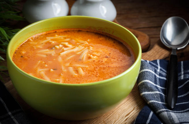 شوربة البندورة مع الشعيرية