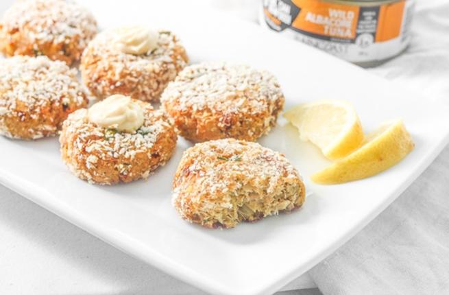 في وعاء متوسط الحجم، تضاف التونة والبيض والبصل الأخضر والمايونيز والخردل وعصير الليمون والتوابل الايطالية والملح والفلفل و¼ كوب من فتات الخبز / البقسماط. يحرك المزيج جيدا.
