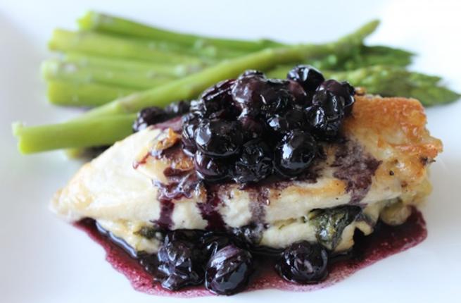 اثناء ذلك، يمكنك تحضير صلصة التوت والخردل عن طريق تقطيع البصل إلى قطع صغيرة. يطبخ البصل في قدر به 2 ملعقة طعام من الزيت النباتي حتى يصبح البصل شفافا. يضاف الخردل ديجون والمرق ويخلط جيدا.