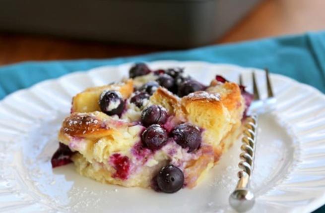 توضع قطع الكرواسون في صينية مربعة بحجم 9 بوصة. وترش بالتوت.