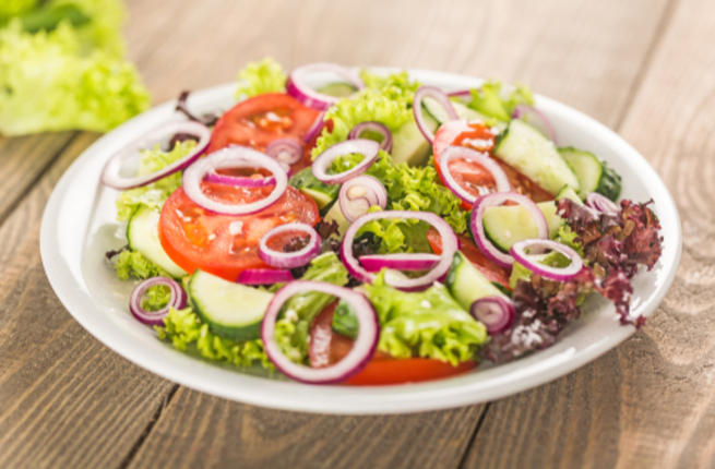 – تقطيع البصل حجم وسط ويتم اضافه قطرات من الخل وزيت الزيتون عليه ورشة ملح صغيرة حتى تمنع رائحته من الظهور .