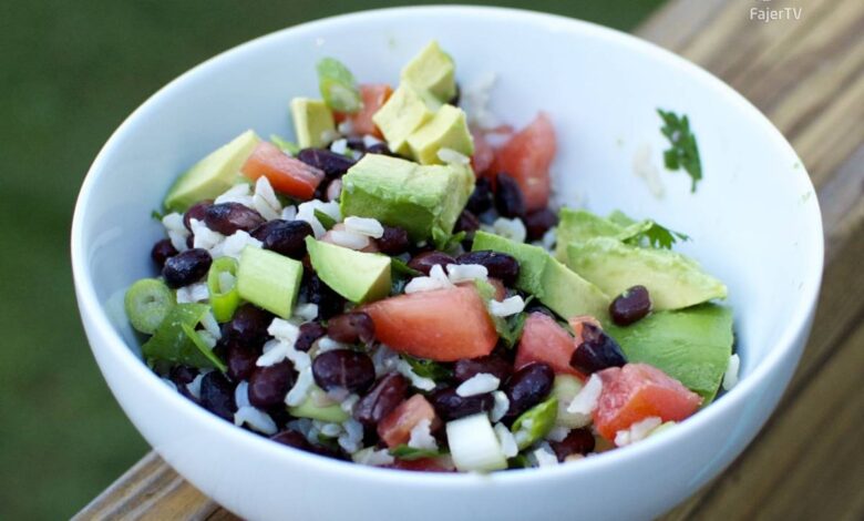 سلطة غريبة تحتوي الفاصولياء، الأرزّ والأفوكا