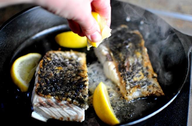 توزع الزبدة على سطح قطعة السمك ثم يسكب فوقها عصير الليمون الحامض ومعه البابريكا ودبس البندورة والبصلة والثوم ثم يرش قليلا من الملح والفلفل الأسود.