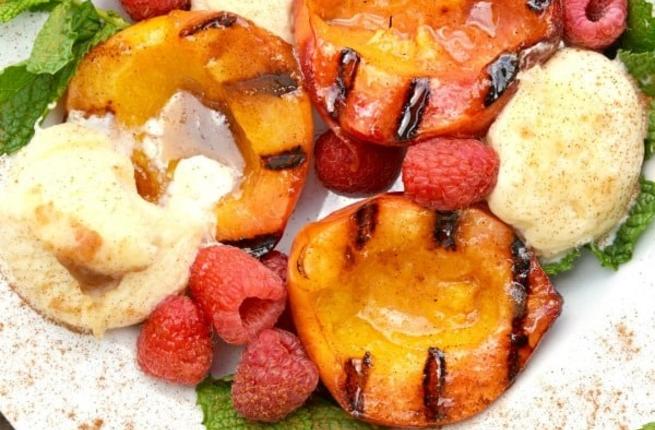 تتميز الحلويات الصيفية بأنها خفيفة وانت لا تحتاج الى الكثير من السكريات لتشعر بالطعم الشهي، كل ما عليك عمله هو تقطيع حبات الدراق الطازجة وتقطيعها من النصف ورشها بالقليل من القرفة والسكر البني والزبدة.