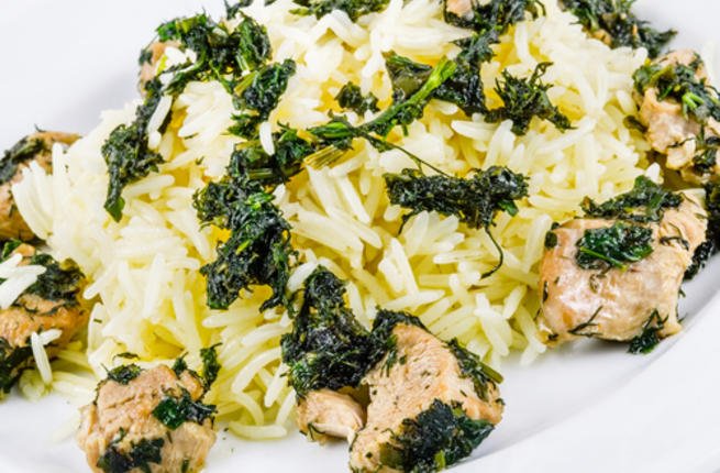 إليكم طريقة سهلة لعمل السبانخ مع الدجاج والأرز: