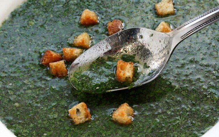 6. يضاف مرقه اللحم على الملوخية تدريجيا مع التقليب ونضع بالمقدار المناسب، إذا كانت الملوخية كثيفة جداً، يمكن إضافة القليل من الماء.