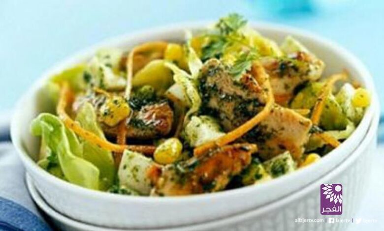 1- اخلطي كل الخضار مع قطع الدجاج.