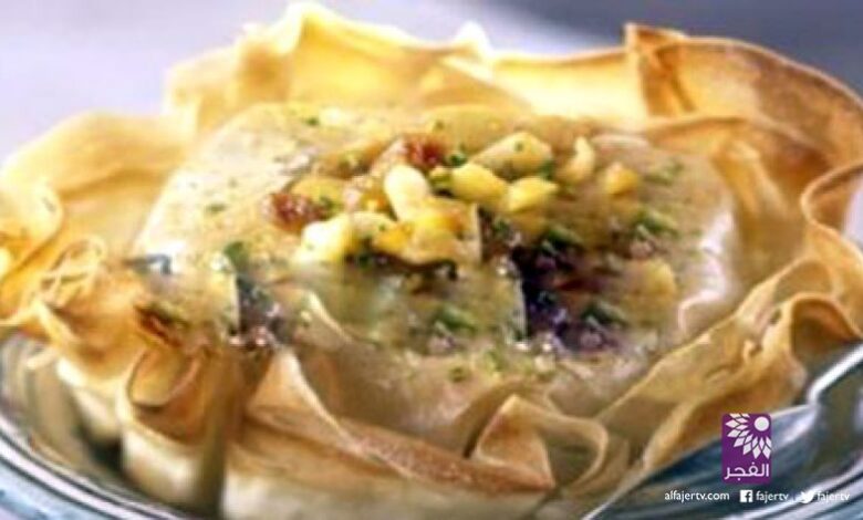 5- عند التقديم ضعي ورقة مزدوجة وادهنيها بالكريمة، وبعد ذلك ضعي عليها ورقة ثانية وعليها الكريمة، وكرري العملية حتى تنتهي أوراق الجلاش، وزيّنيها بالمكسرات وسكر البودرة، وقدّميها.. بالهنا والشفا.