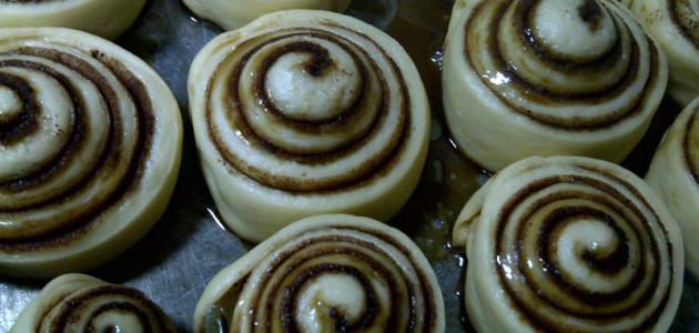 - نصف حبات السينابون في صينية مدهونة بالزبدة، ثمّ نتركها لمدّة نصف ساعة أخرى حتى تتخمّر مجدّداً.
