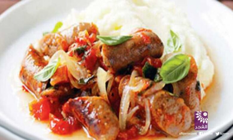 – ضعيها في طبق للتقديم ثم انثري عليها كمية من البقدونس المقطع ، وارفعي قدر السجق عن النار وضعيه في طبق التقديم وقدمي البطاطس بجانبه واستمتعي بالمذاق الرائع.