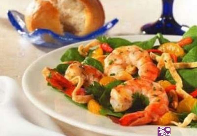 ٢. يخلط الجمبري مع الخس والزيتون ثم يضاف المايونيز ويقلب.