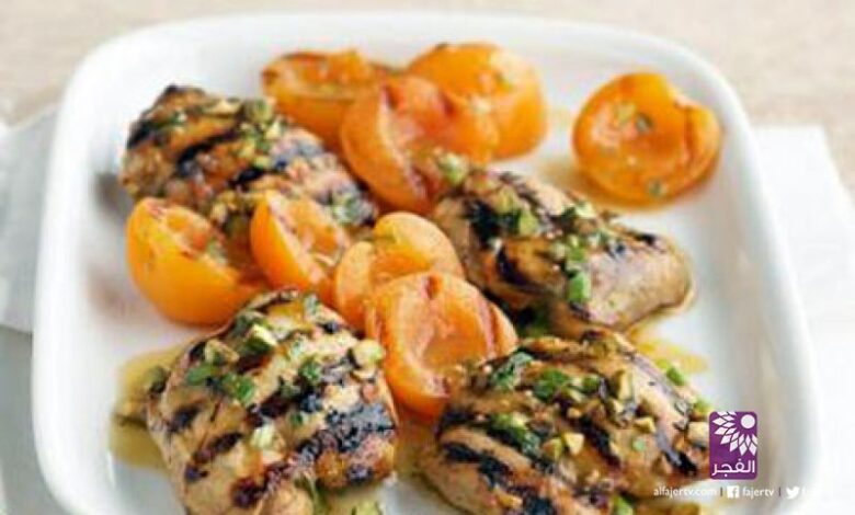 5- بعد نضج الدجاج رصّيه في طبق التقديم، ورشّي فوقه صوص المشمش؛ وبألف هنا وشفا.