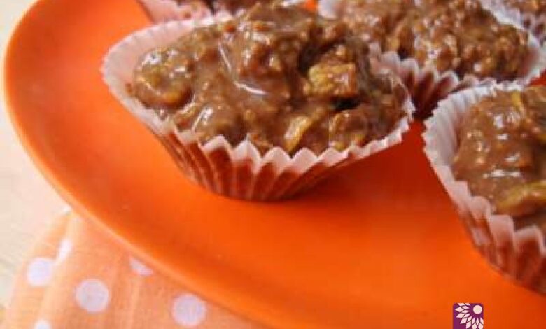 4. تشكل كور صغيرة من الخليط سريعاً فوق ورق برشمان في صينية خبز (يمكن استخدام ملعقتان في هذه الخطوة بحيث يتم تشكيل الكتل بملعقة ووضعها على الورق بملعقة أخرى لتسهيل هذه العملية) ويجب أن تكون هذه الخطوة سريعة حتى تكون عملية التشكيل سهلة قبل تماسك الشيكولاتة تماما….