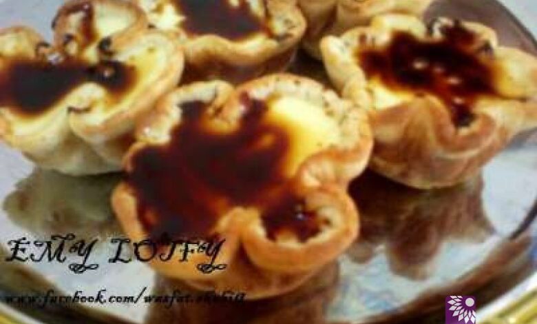 بنجيب عجينة القطايف وندهنها كويس بالزيت من الناحيتين ونحطهم في قوالب الكب كيك وندخلها الفرن لحد اما تحمر ونخرجها ونسقيها شربات