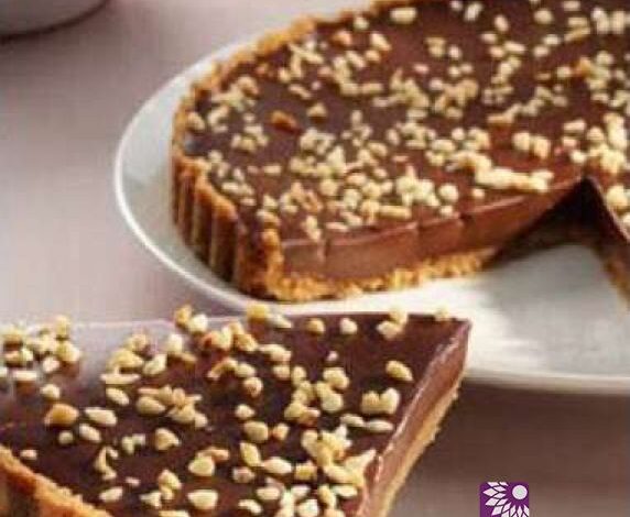 يوزع مزيج الشيىكولاتة والقشطة بشكل متجانس فوق طبقة البسكويت والذبدة والبندق و يمكن اضافة العسل النحل