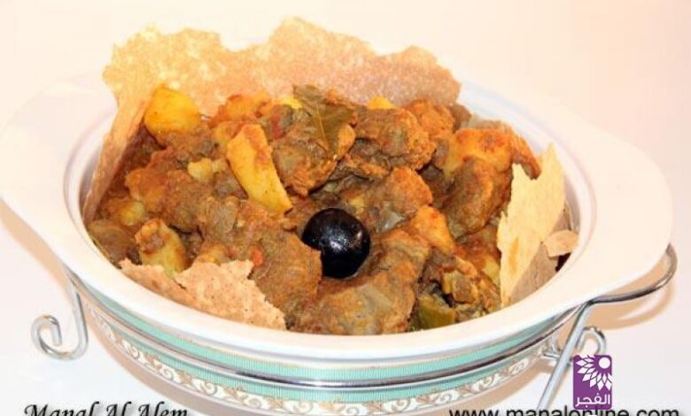 7. في طبق عميق ضعي خبز الرقاق. باستعمال مغرفة عميقة أسكبي الثريد على الخبز وقدمي مباشرة.