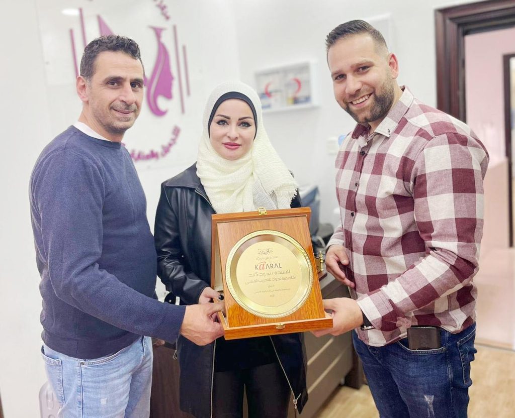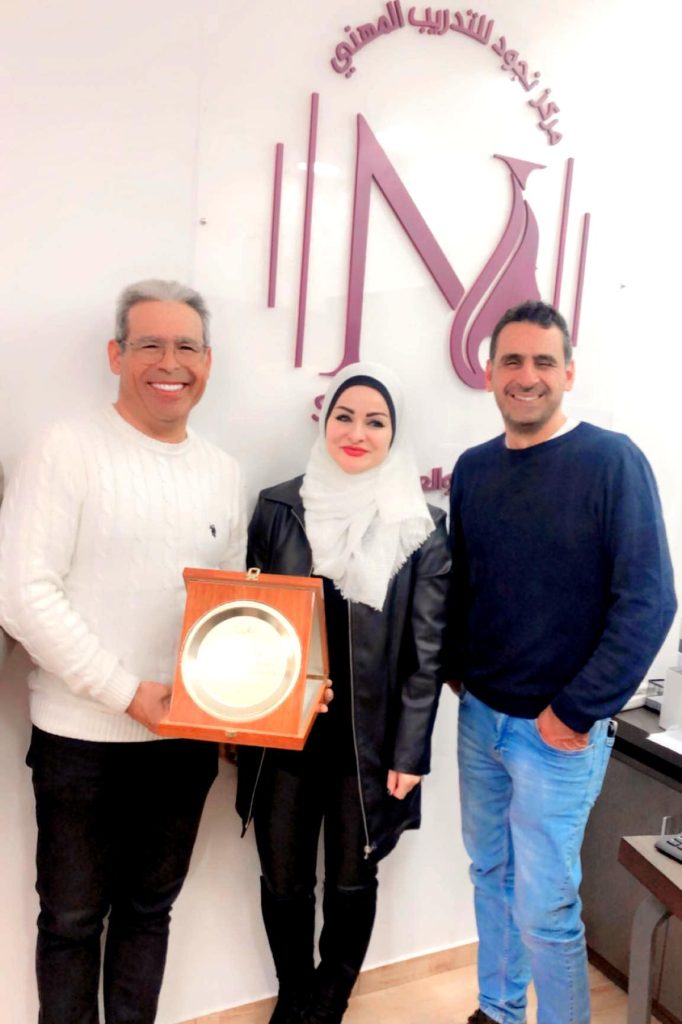 وفي نهاية اليوم الدراسي قام المحاضرون عازر وحبش والقاضي بتقديم درع تقديري للمدربة والخبيرة نجود الكايد على دورها المميز في هذا العالم وكذلك لمناسبة افتتاح أكاديمية نجود للتدريب المهني والتي تسجل النوعية من خلاله مباركين لها هذا الانجاز الجديد إضافة لانجازاتها التي تحققها في هذا المجال .