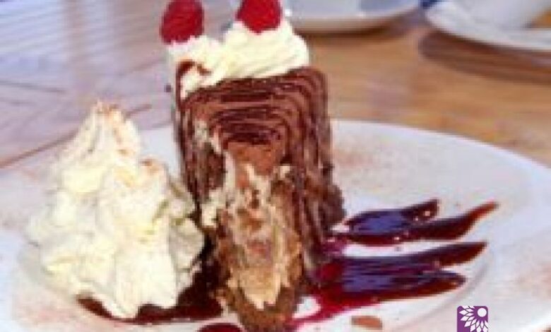 14.تزين بجلاصاج الشوكولا وقطع الشوكولا المفرومة وتوضع في الثلاجة الى حين تقديمها