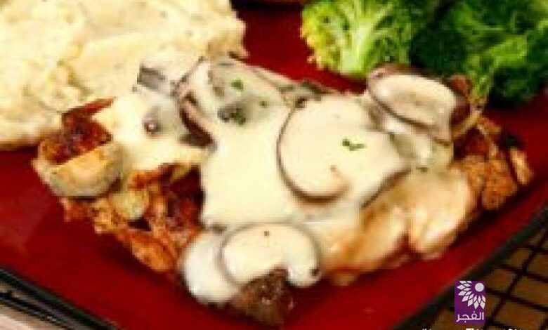 4- يقلى البصل في وعاء يحتوي على الزبدة، حتى يذبل. ثم، يضاف البهار الأبيض والكريما. ويدع هذا المزيج على النار لمدّة خمس دقائق. ثم، يسكب فوق الدجاج.