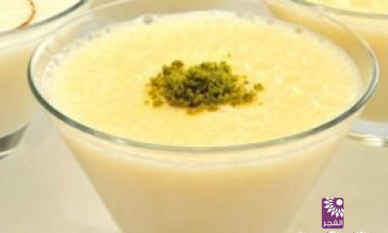 •يسكب المزيج في كاسات صغيرة أو صينية كبيرة حسب الرغبة ويترك ليبرد في درجة حرارة الغرفة ثم يدخل في الثـــلاجة