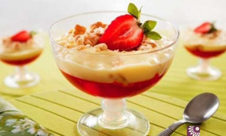 7- ضعي الكؤوس في البراد لساعات عدّة، وزيّني بالبسكويت والفراولة، وقدّميها.