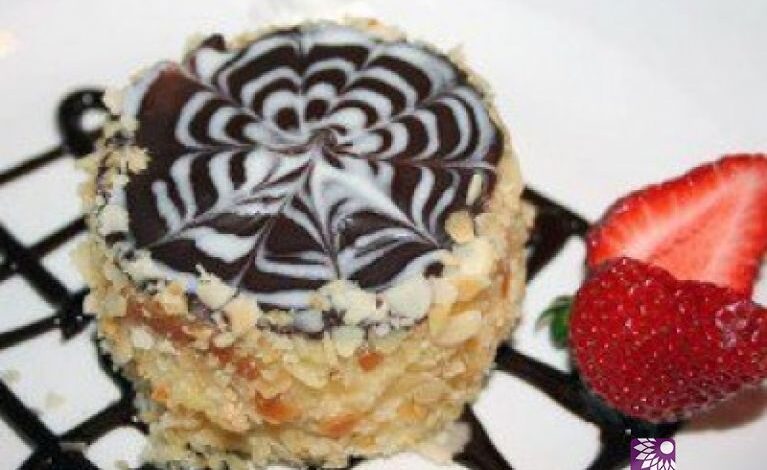 ويُغطّى المعمول بشرائح الفواكه، اللوز المحمّص والعســل.