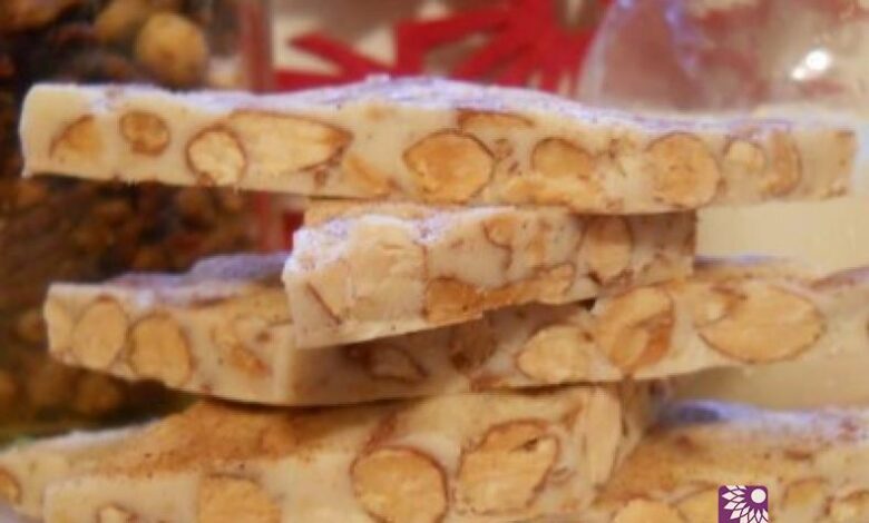 5 – يـرفع الخليط من على النــار ويترك لدقائق حتى تهدأ حرارته، ثم يضاف إليه حبات اللــوز المُحمص وتقلب به جيــداً حتى تتــوزع به.