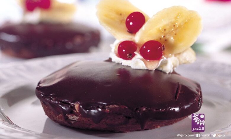 تحشى التورتات بشرائح الموز والقشدة المحضرة. تسكب من ثم صلصة الشوكولا وتزين بشرائح الموز قبل التقديم.