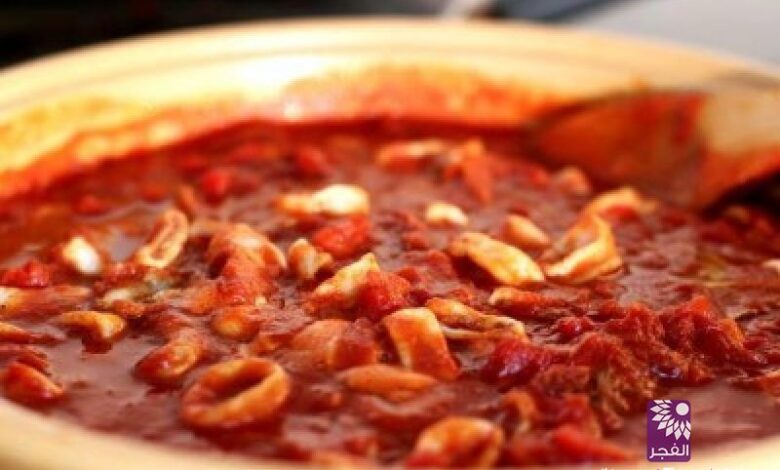12- تضــاف الصلصة والماء إلى الخليــط ويقلب جيداً، ثم يُغطى ويترك على النــار حتى يَغلى.