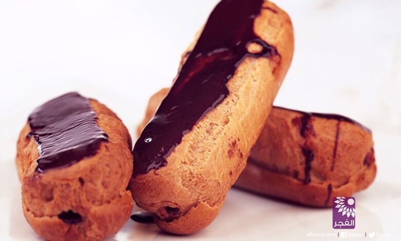تخبز قطع الإكلير في فرن حرارته ٣٧٥ درجة فهرنهايت لمدة ٣٥ إلى ٤٠ دقيقة أو حتى تقسو قطع الإكلير وتصبح وردية اللون.