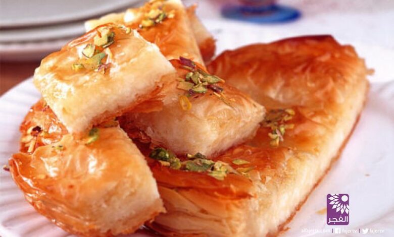 تلفزيون الفجر الجديد| طريقة تحضير بقلاوة محشوة بالجبنة 5 إلى 6 أشخاص
