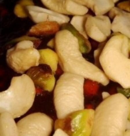 تقدم ساخنة، ويمكننا خلط المكسرات مع الخليط أو نكتفي بالتزيين.