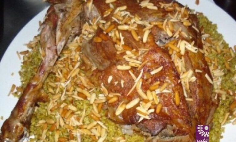 بعد نصف ساعة تحرّك الفريكة وتترك نصف ساعة في الفرن، ثم يقدم منسف الفريكة في طبق.