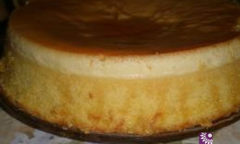 – توضع بقايا مكونات الكريم كراميل بالخلاط وتخلط لمدة دقيقتين وتوضع فوق كراميل السكر بالصينية ويبقى جانباً.