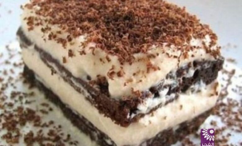 – ثم يضاف إلى كيكة النسكافية طبقة الكريمة و طبقة أخرى من البسكويت والكريمة.