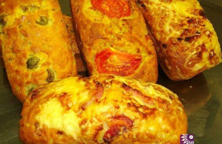 اخفقي البيض جيدا مع الزيت والتوابل والنعناع مجفف والمطحون اضيفي الطحين والخميرة والحليب واخفقي جيدا اضيفي الزيتون والطماطم وفتات الدجاج او التونة او قطع الكاشير او الباتي
