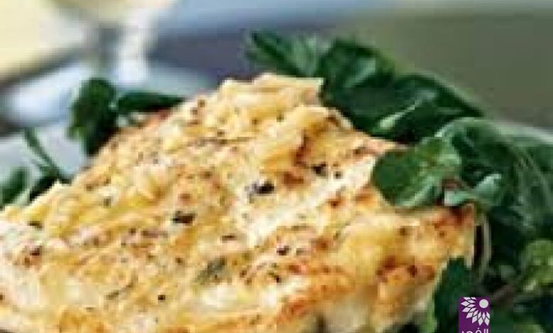 • تسخن مقلاة على نار عالية، ثم يضاف الإسكالوب، ويتبل بالملح والفلفل، ويترك ليذبل.
