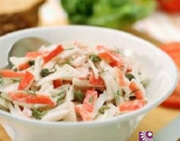 2- تمزج مقادير الصلصة في وعاء منفصل وتقلب مع السلطة ثم تنقل بعدها إلى وعاء التقديم.