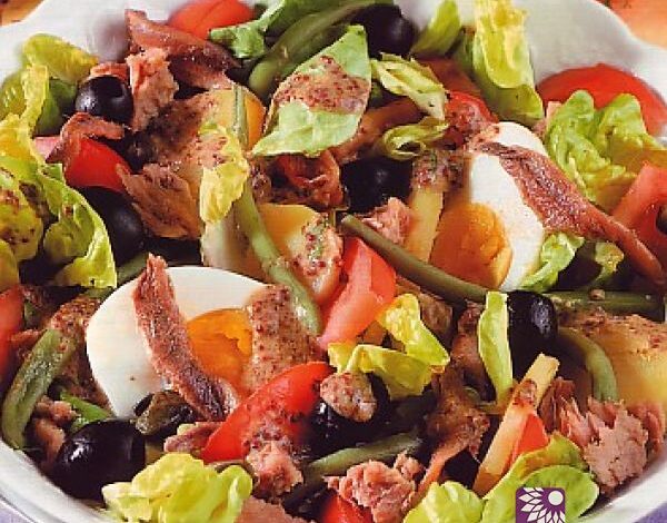 نقوم بتتبيل الخضار بالفلفل الاسود والملح وزيت الذرة وعصير اليمون ثم اضافة البطاطس والخبز المحمص قبل التقديم مباشرة. ملاحظات:عند سلق البطاطس يفضل اضافة التوابل وفص ثوم لاكساب البطاطس نكهة