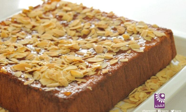 قدمي كيكة اللوز باردة، وتمتعي بمذاقها الشهي واللذيذ.