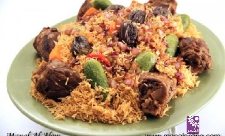 11. باستعمال ملعقة معدنية عريضة اخرجي الكشنة عن سطح الارز. باستعمال شوكة قلبي الارز بخفة ثم أسكبي في طبق واسع. وزعي اللحم والخضروات. وزعي الكشنة على الكبسة ثم قدميها.