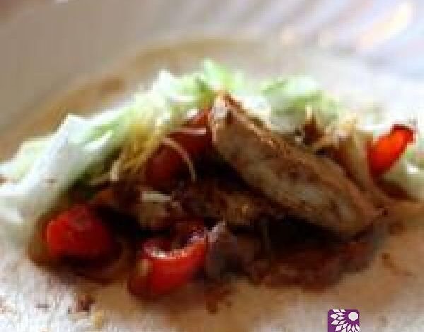ـ نبدأ نحشي التورتيلا بخليط اللحم وقليل من شرائح البصل الابيض وصلصة الكريمة والجبن المبشور..