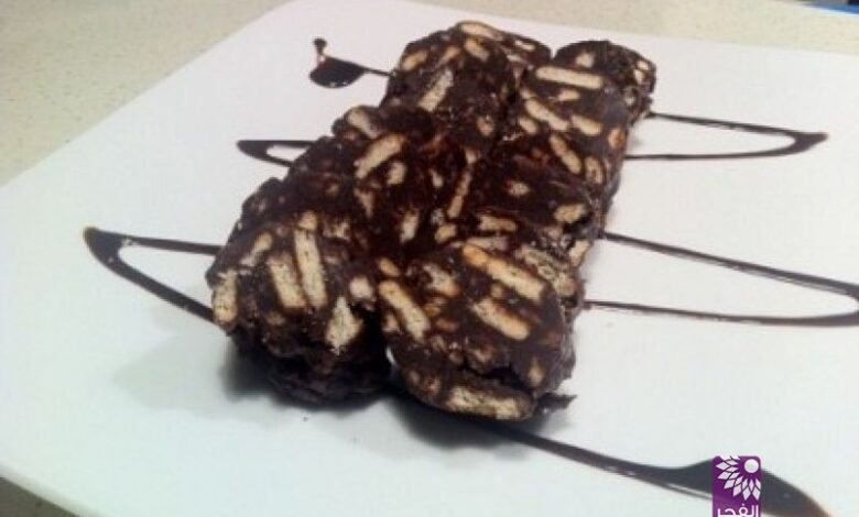 – يضاف البسكويت إلى الخليط ويقلب جيداً.