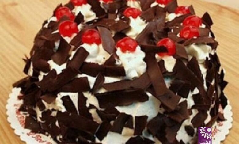 – تنزع نواة الكرز الاسود وتقطع انصافاً فوق طبقة الكريمة.