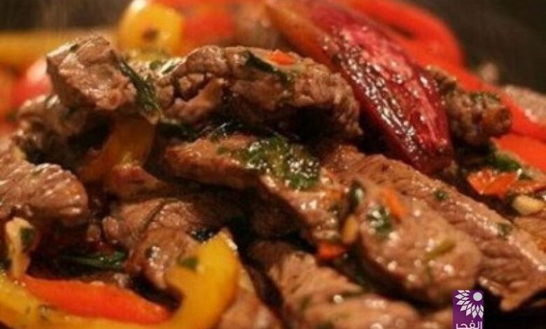 شرائح اللحمة مع الخضروات وصلصة الطماطم بالكزبرة