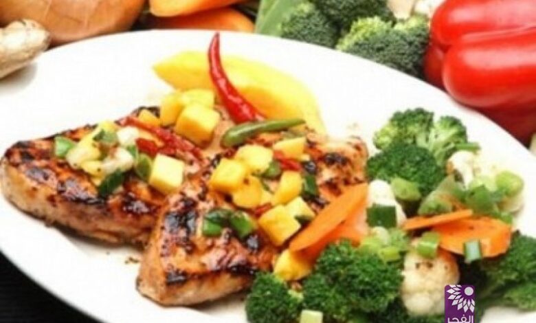 – بعد ذلك، يحمى الفرن وتوضع قطع الدجاج مع الخضار في الصينية ويدار عليها الزيت.