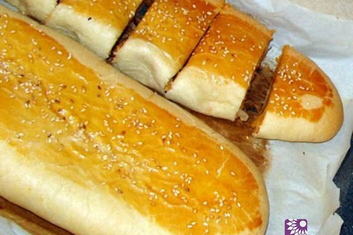نفتح بسكين الخبز ثم نحشيه على حسب الرغبة :