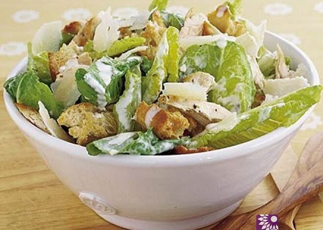 في وعاء واسع نقطع الخس والبصل وعند التقديم نضع الصوص و نقلبه مع الخس ونضع الخبز والدجاج المقطع بعد عصرليمون عليه ونرش جبنة بارميزان وشرائح الروست بيف والدجاج المدخن والتوست على الوجه للتزيين.